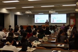 『大学の授業を体験してみよう 近代文学の授業』という題で、三品理絵教授による近代文学の講義が行われました。