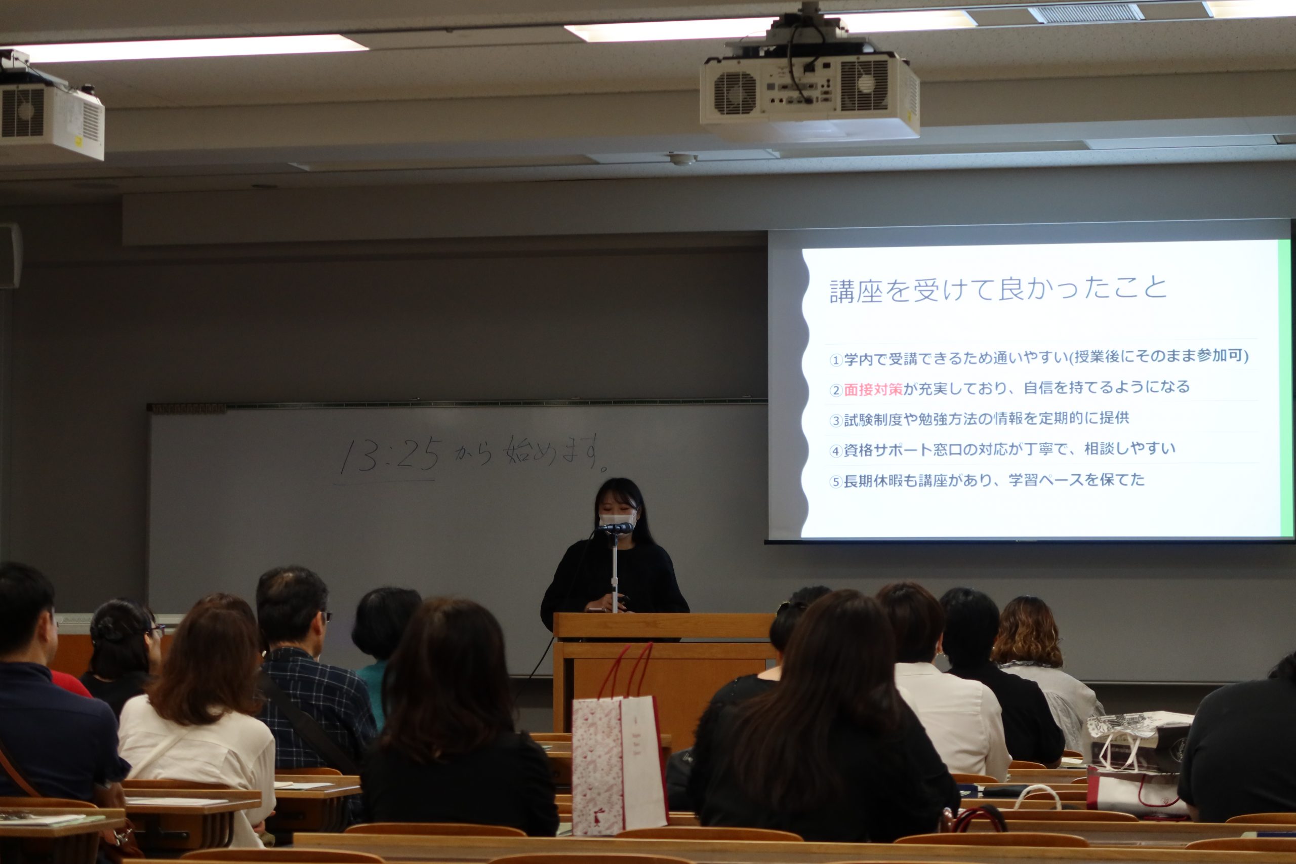 9月27(土)、大学と保護者が質疑を通して連携を深める「教育懇談会」が中央キャンパスにて開催されました。 公江記念講堂で行われた全体会のあと、学科ごとの説明会や個別懇談会が行われました。 学科での説明会では、今年度内定者による就職活動報告がありました。 たくさんの保護者の方々にお集まりいただきました。 ご参加いただきました保護者の皆様、ありがとうございました。