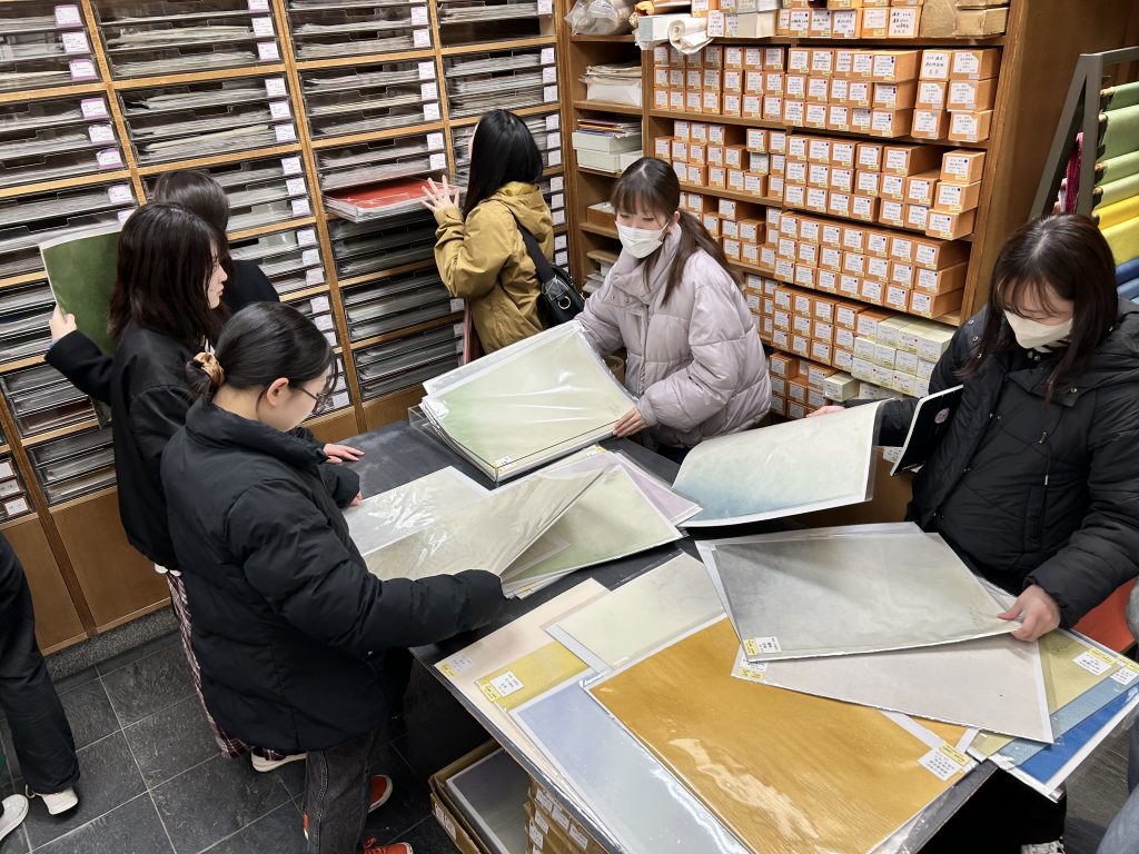 今年も書道ゼミ生で京都の津久間紙店まで、仮名の料紙を買いにいきました。