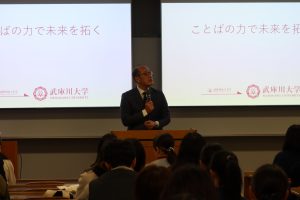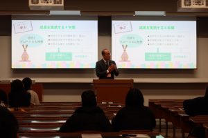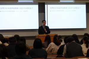 日文学科での学びや就職支援について、山本欣司学科長が詳しく説明しました。